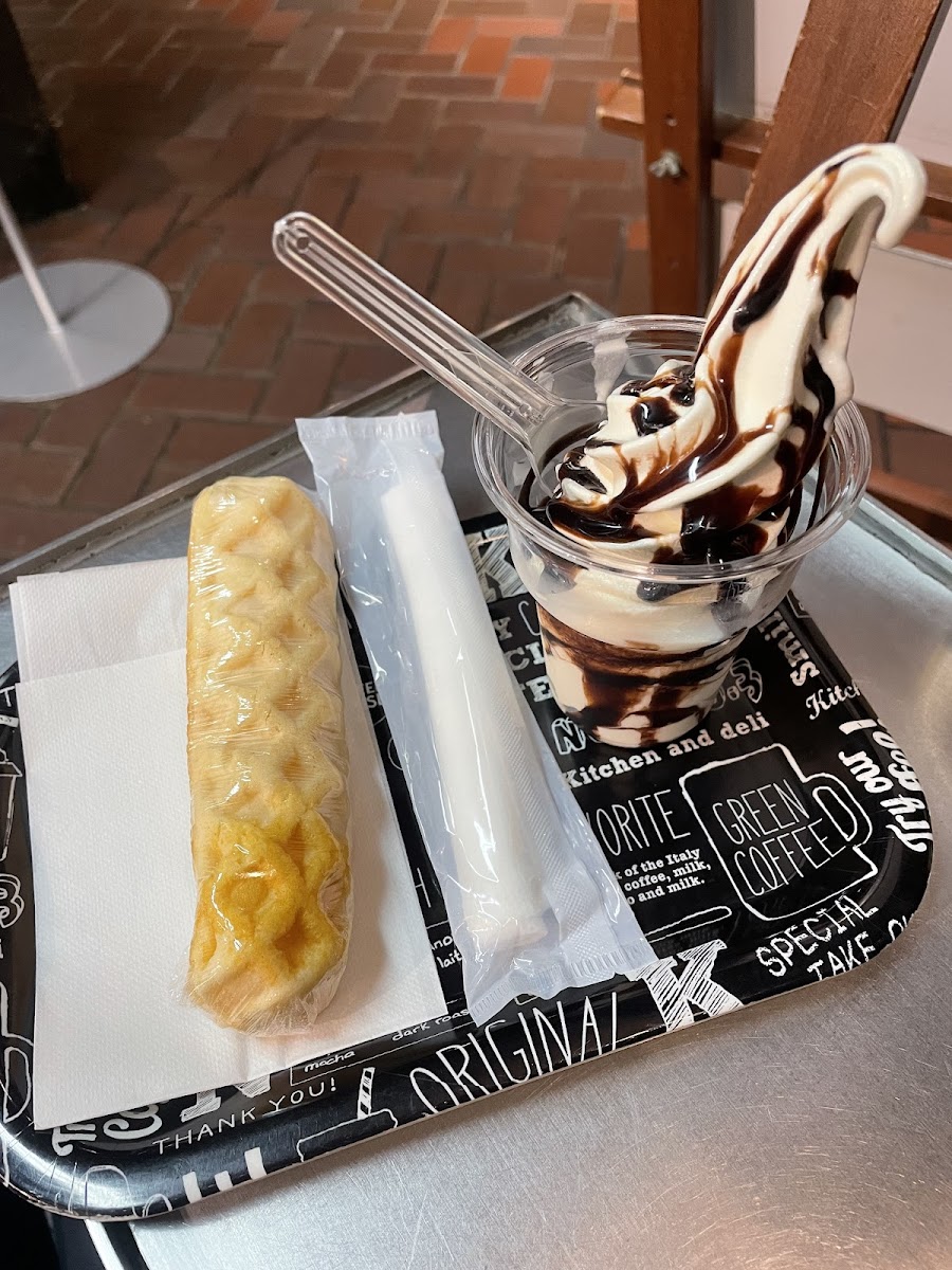 The menu features a selection of comforting treats that won't break the bank. The chocolate sundae (¥400) is a crowd-pleaser, offering a rich, sweet experience that's perfect for indulgent moments. For something savory, the custard dog (¥200) provides warmth and satisfaction, ideal for a quick snack before heading off again. Customers have praised the vanilla and matcha mix, a cool and delicious way to enjoy the harmonious marriage of flavors that Japan is known for.